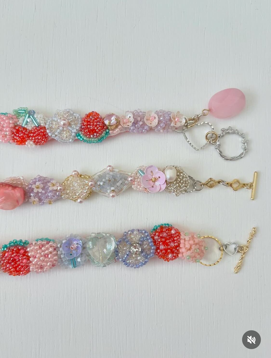 シロツメクサをつなげて花輪にしていくようにひとつひとつ丁寧にすすめているブレスレットのシリーズです