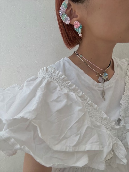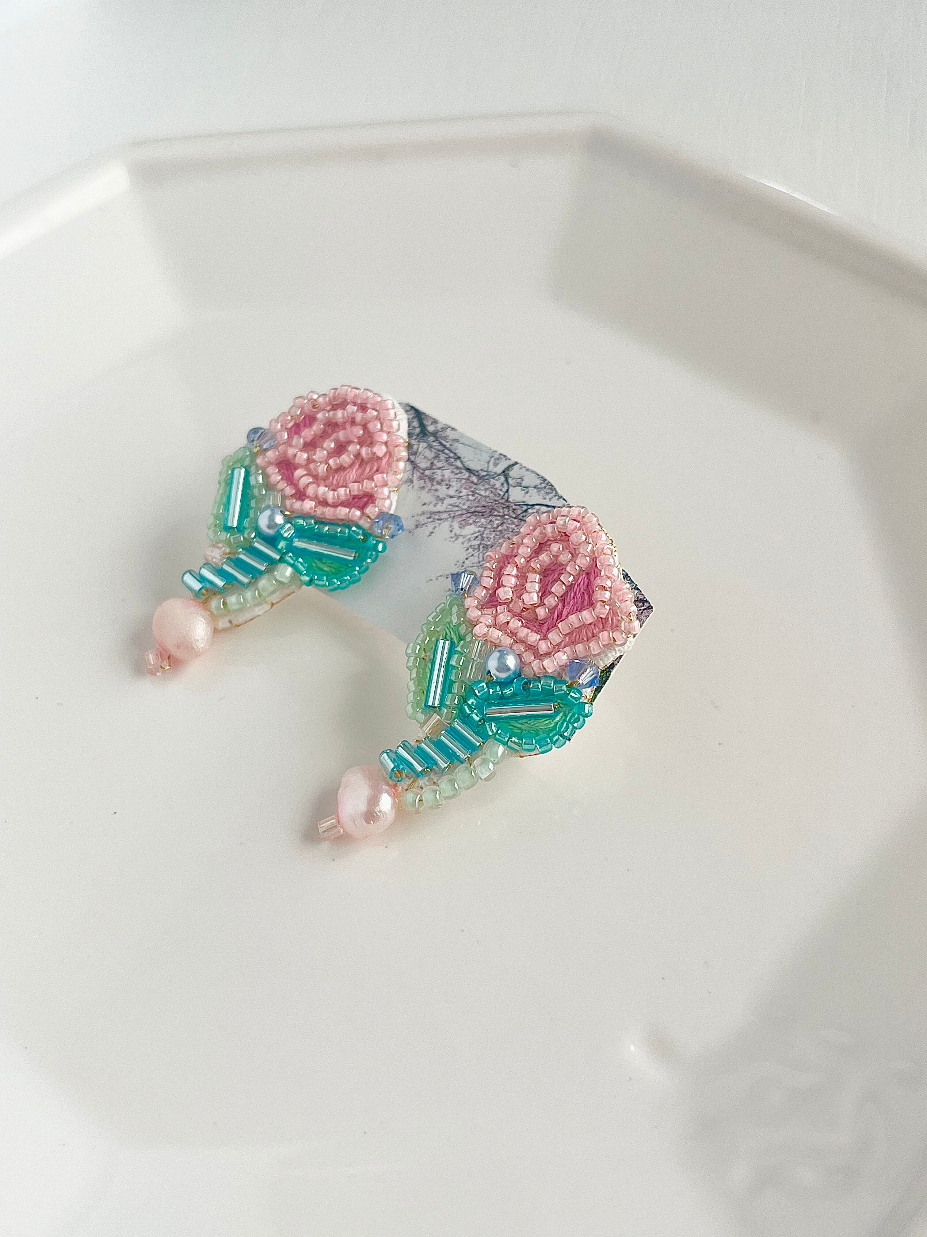 ピンクに染めた淡水パールが愛らしいガーリーな唯一無二な耳飾り