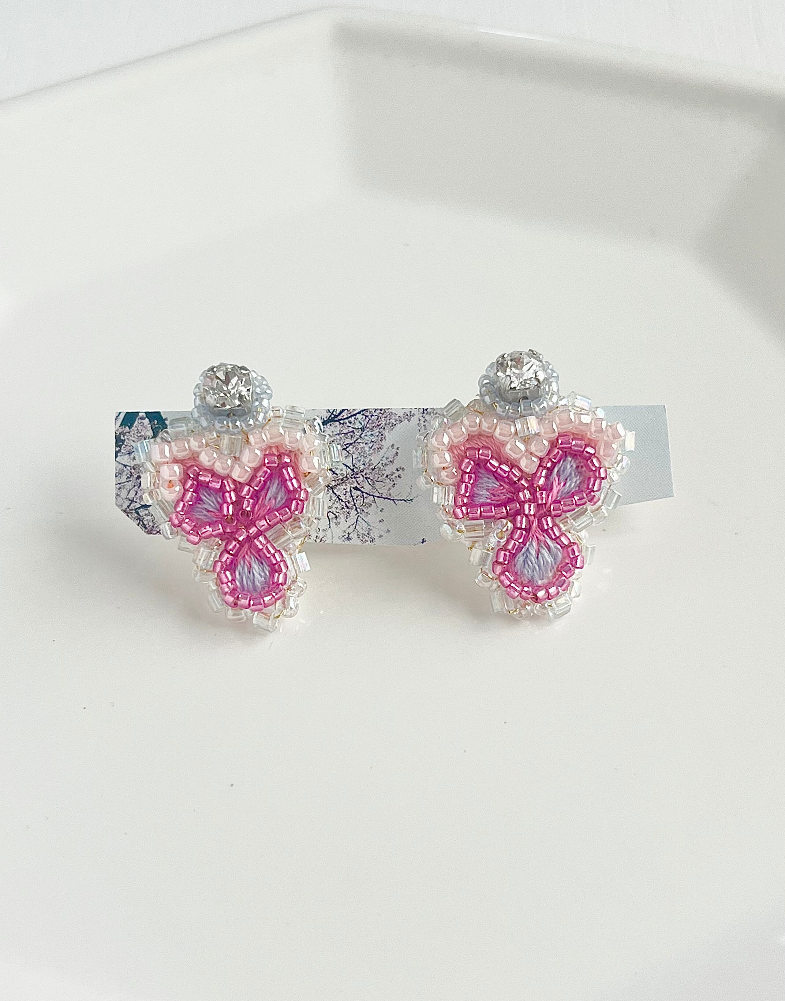 きらきら輝くガラスビーズをトップにデザインした愛らしい耳飾り