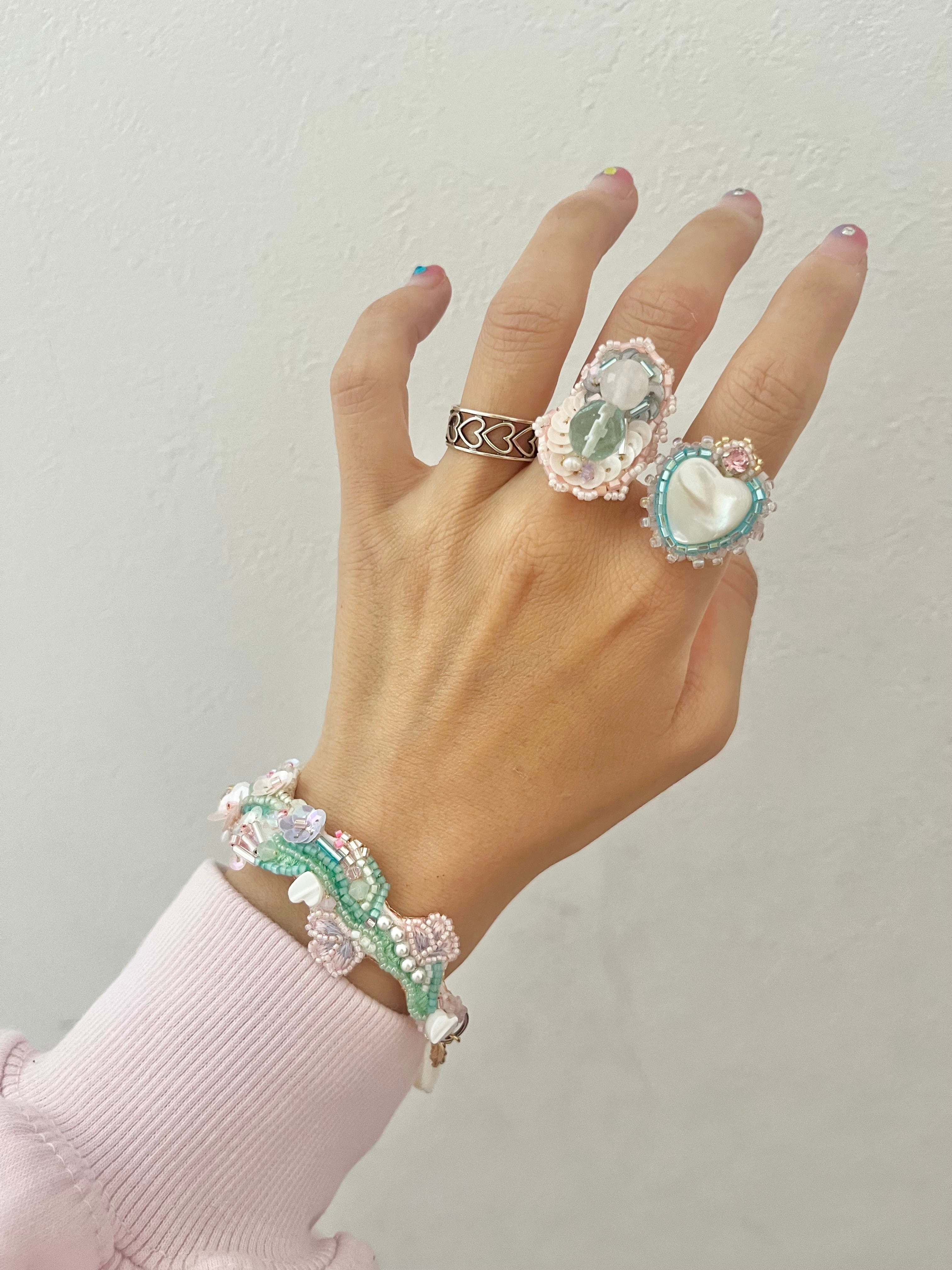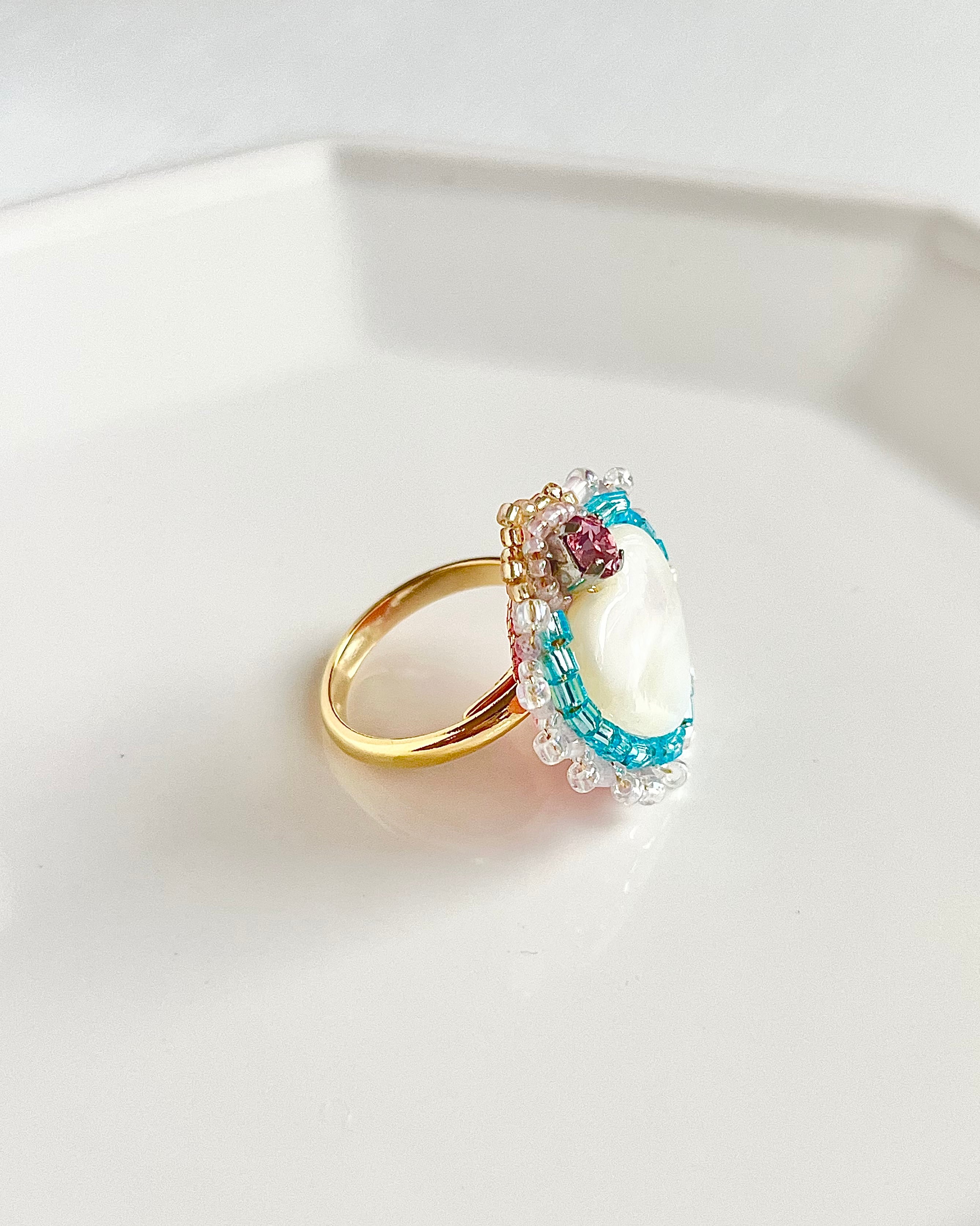 きらめくブルーのビーズがガーリーな愛らしいリング