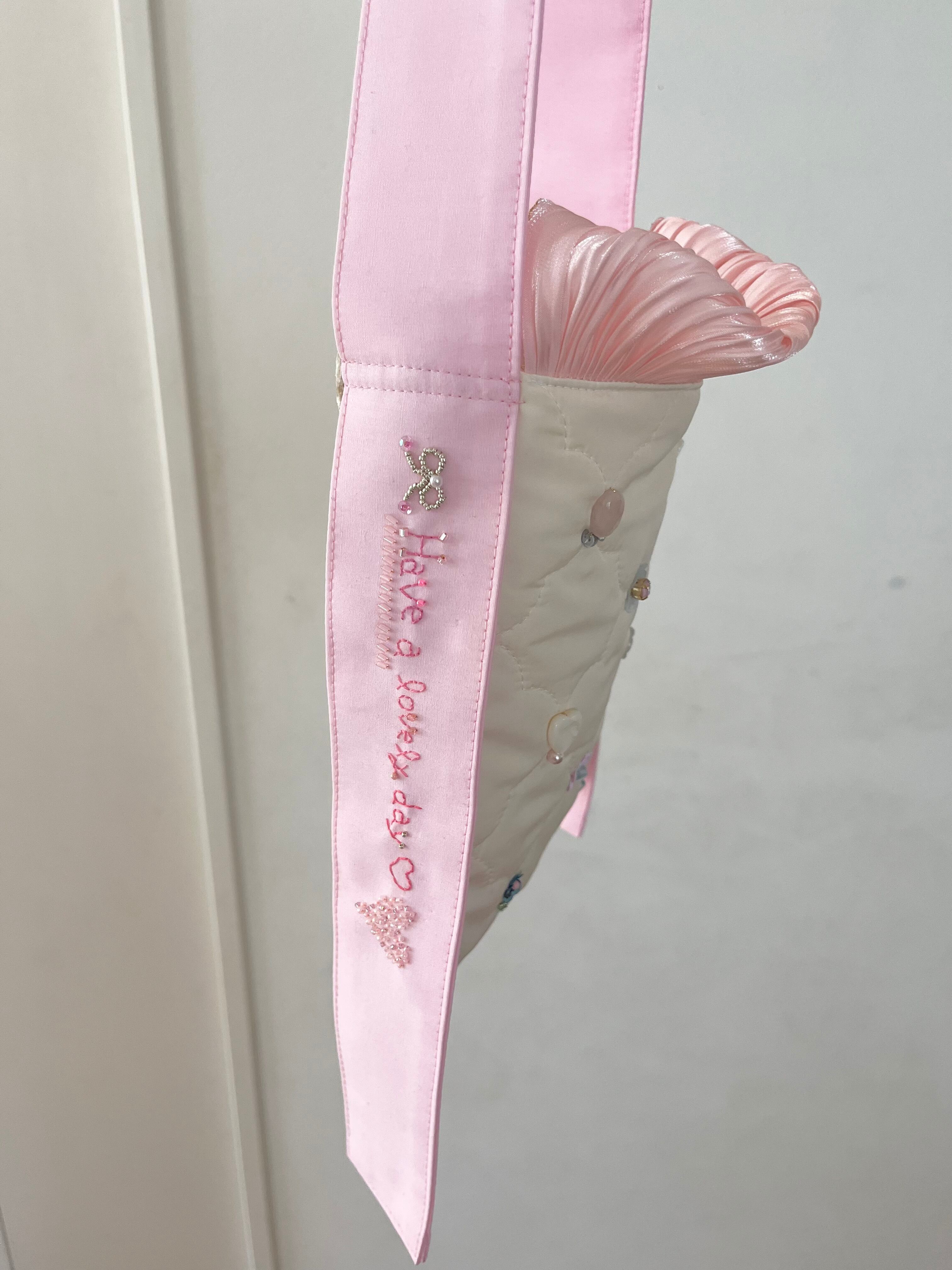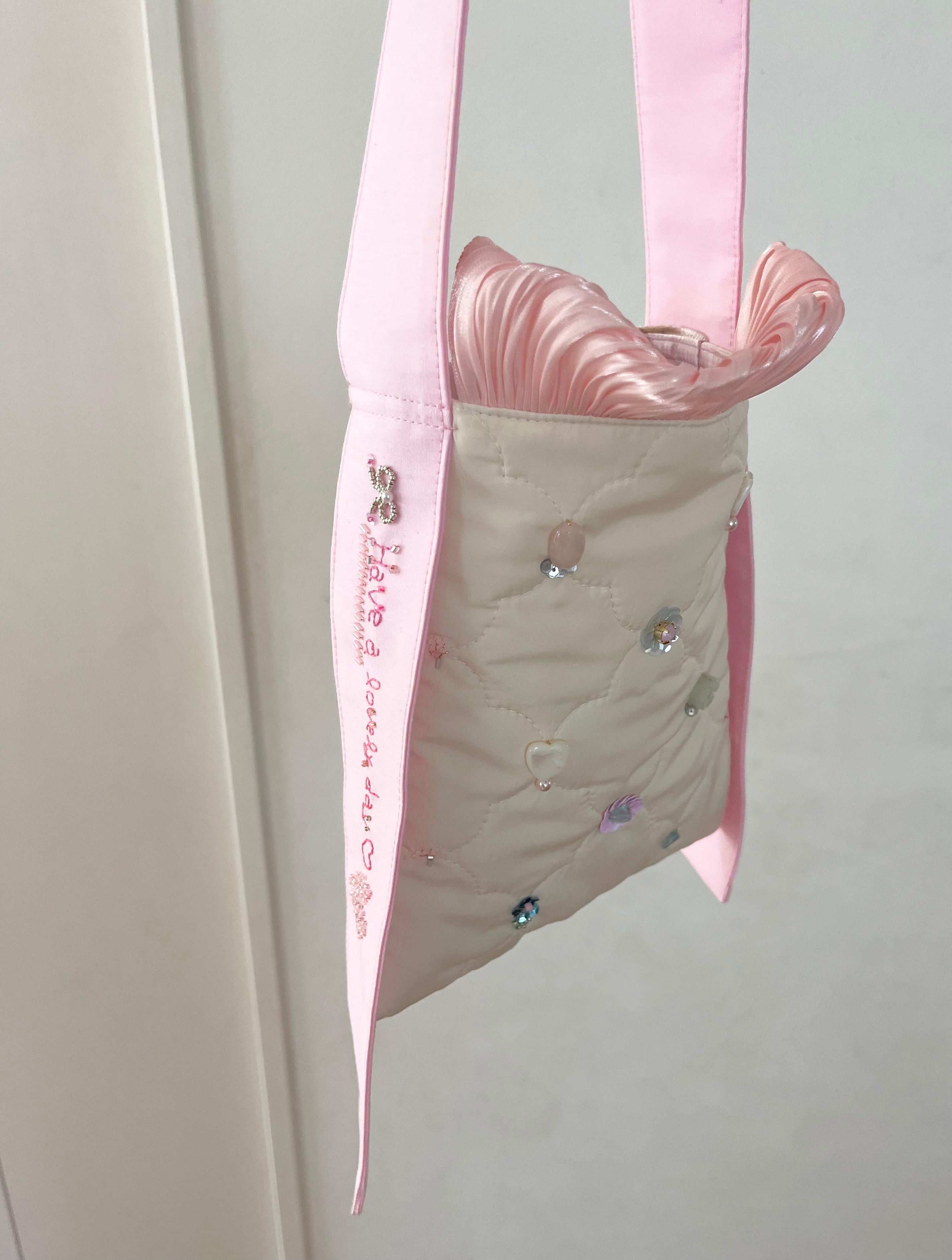 ”天然石やささやかな刺繍を飾ったsuumiの小さなおめかしばっぐ