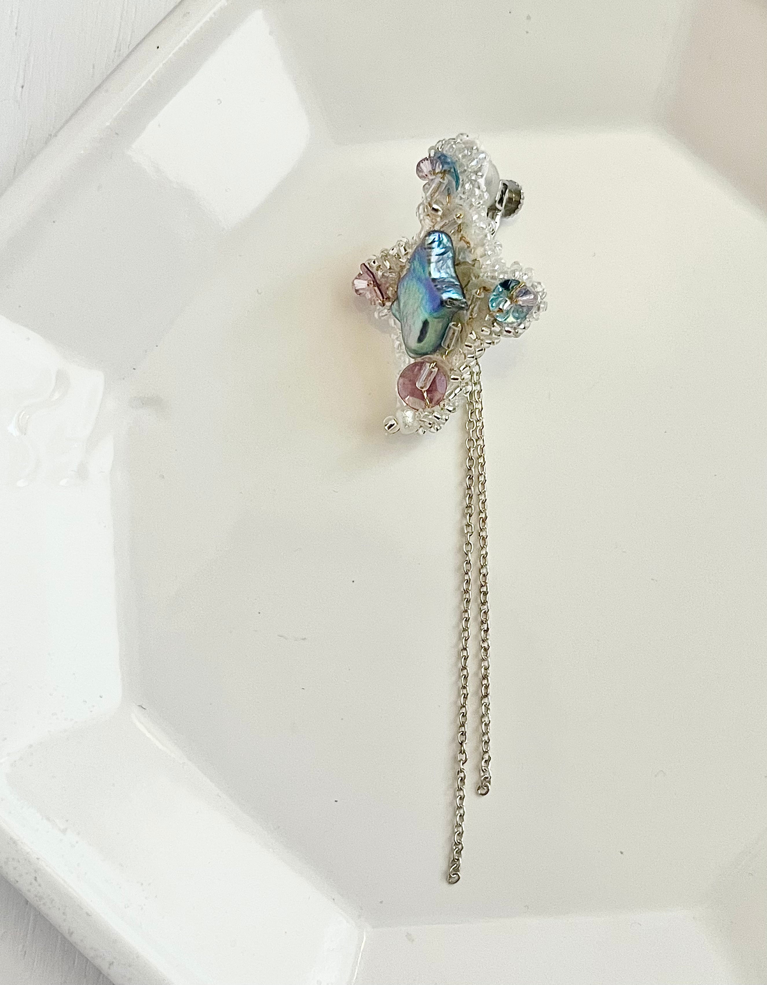 個性的なブラックのパールを主役にしたら片耳ピアスです