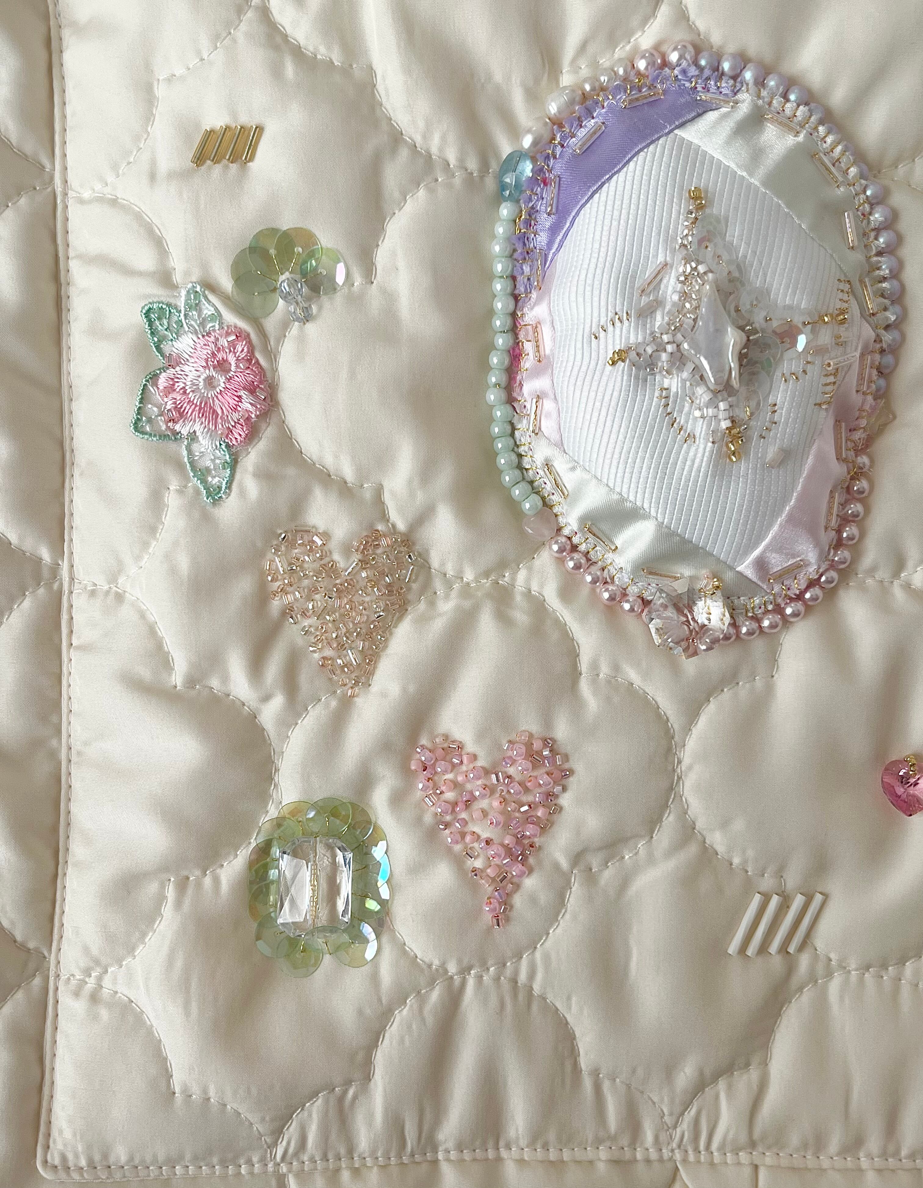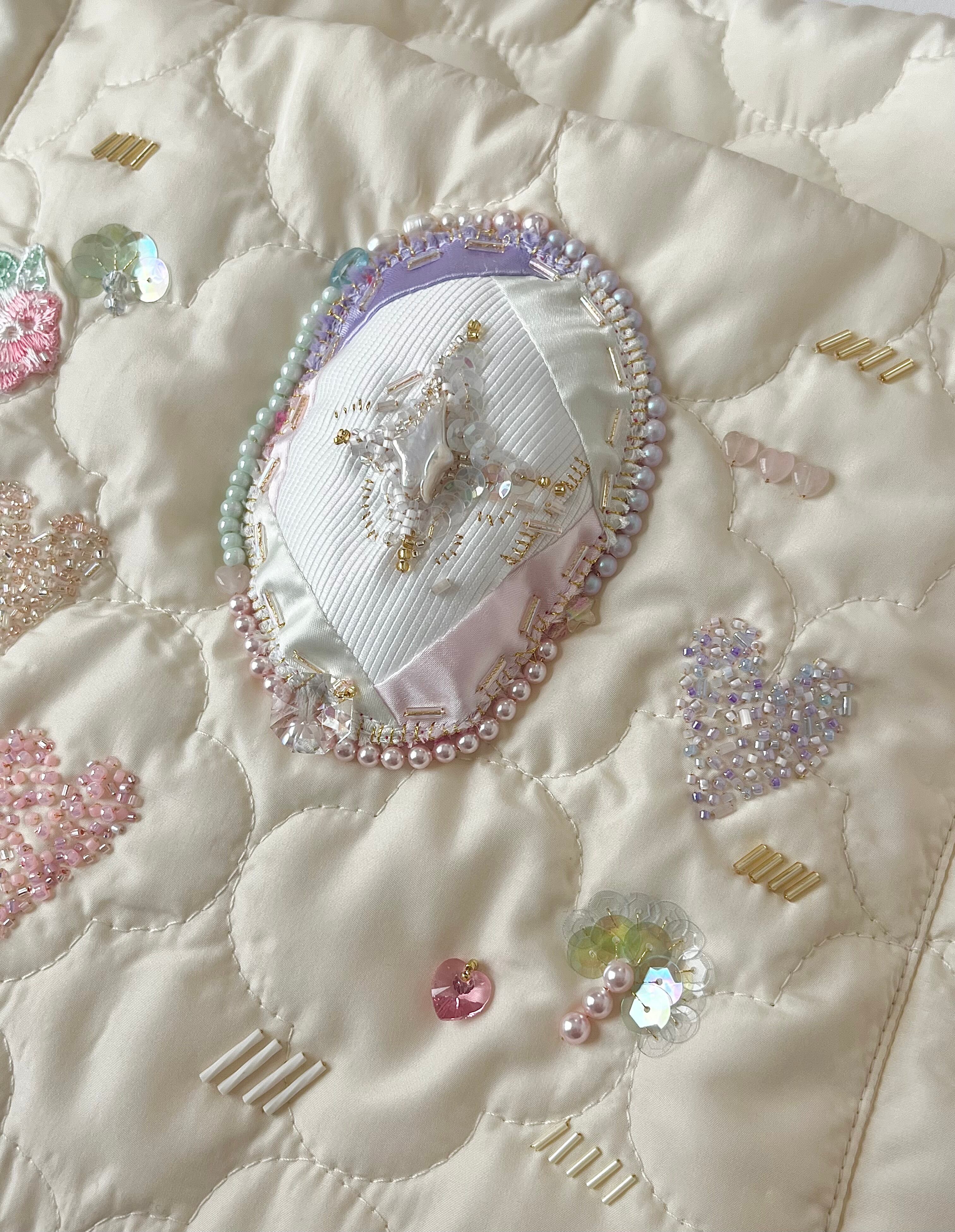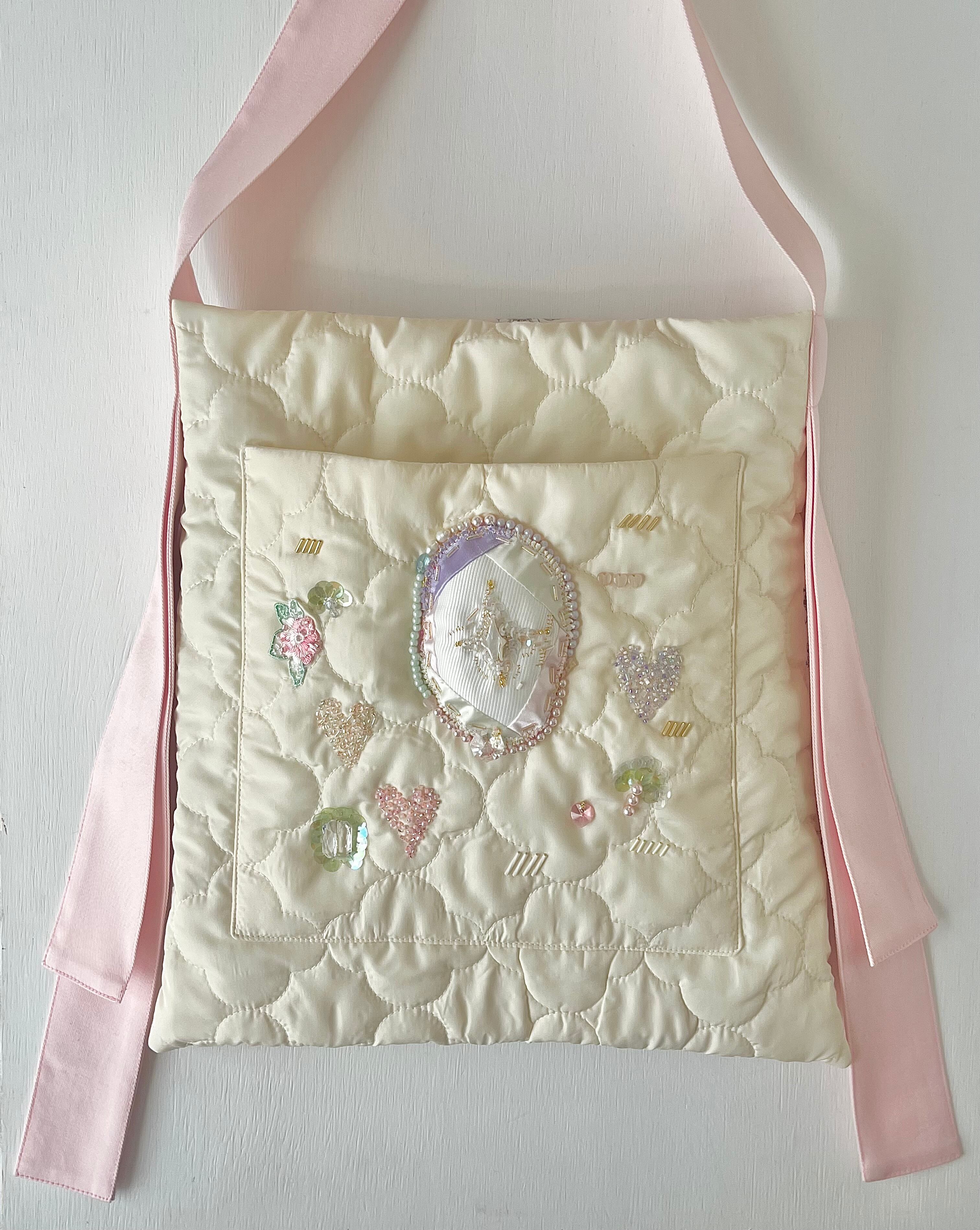 小さく光るガラスビーズ、つやつやのサテン、個性的な天然石など、潜む小女性を丁寧に刺繍して贅沢なポケットを制作。