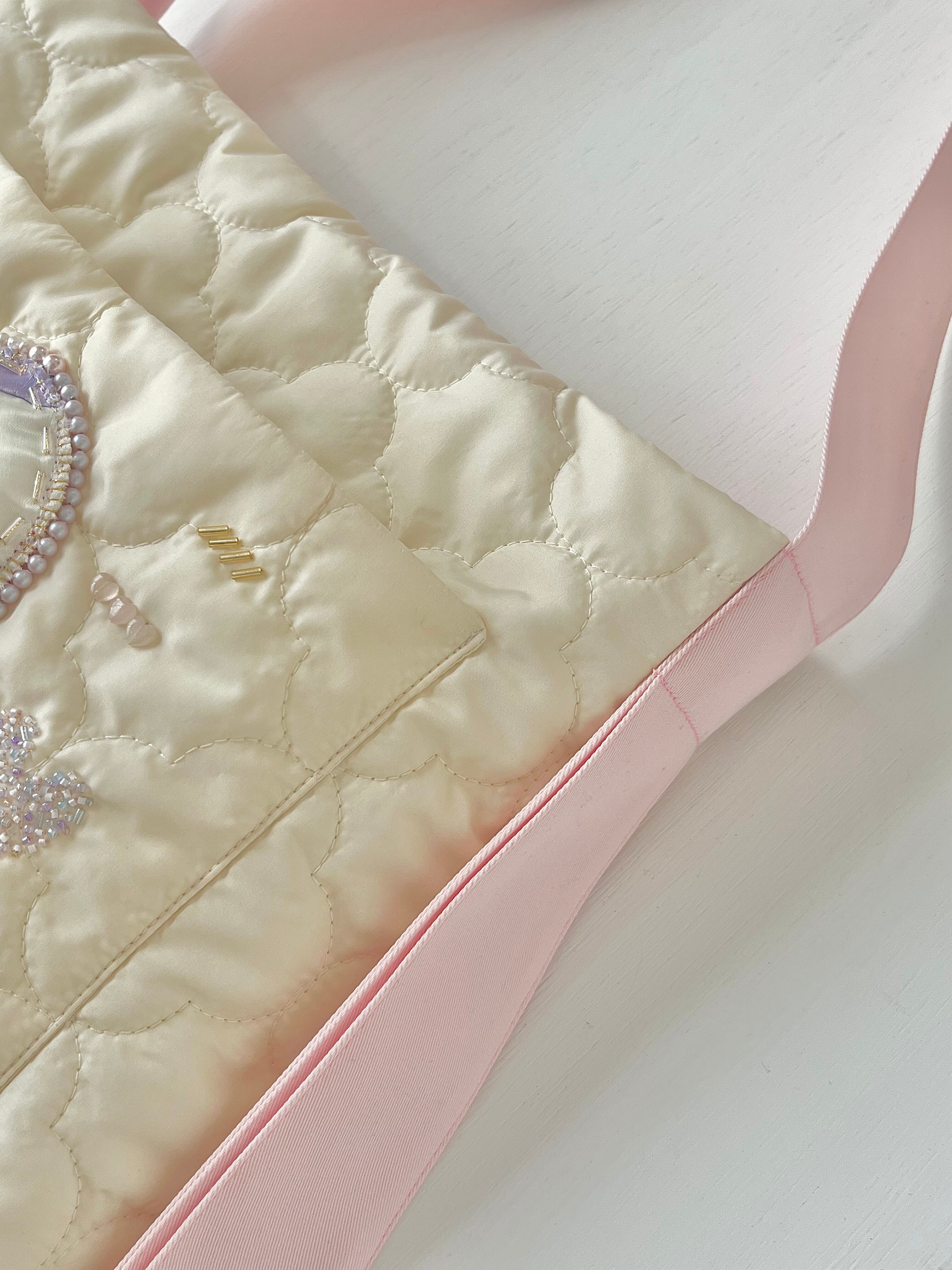 やわらかなキルティング生地と裏布の間には中綿が入っておりふわふわ気持ちよい肌触りです。