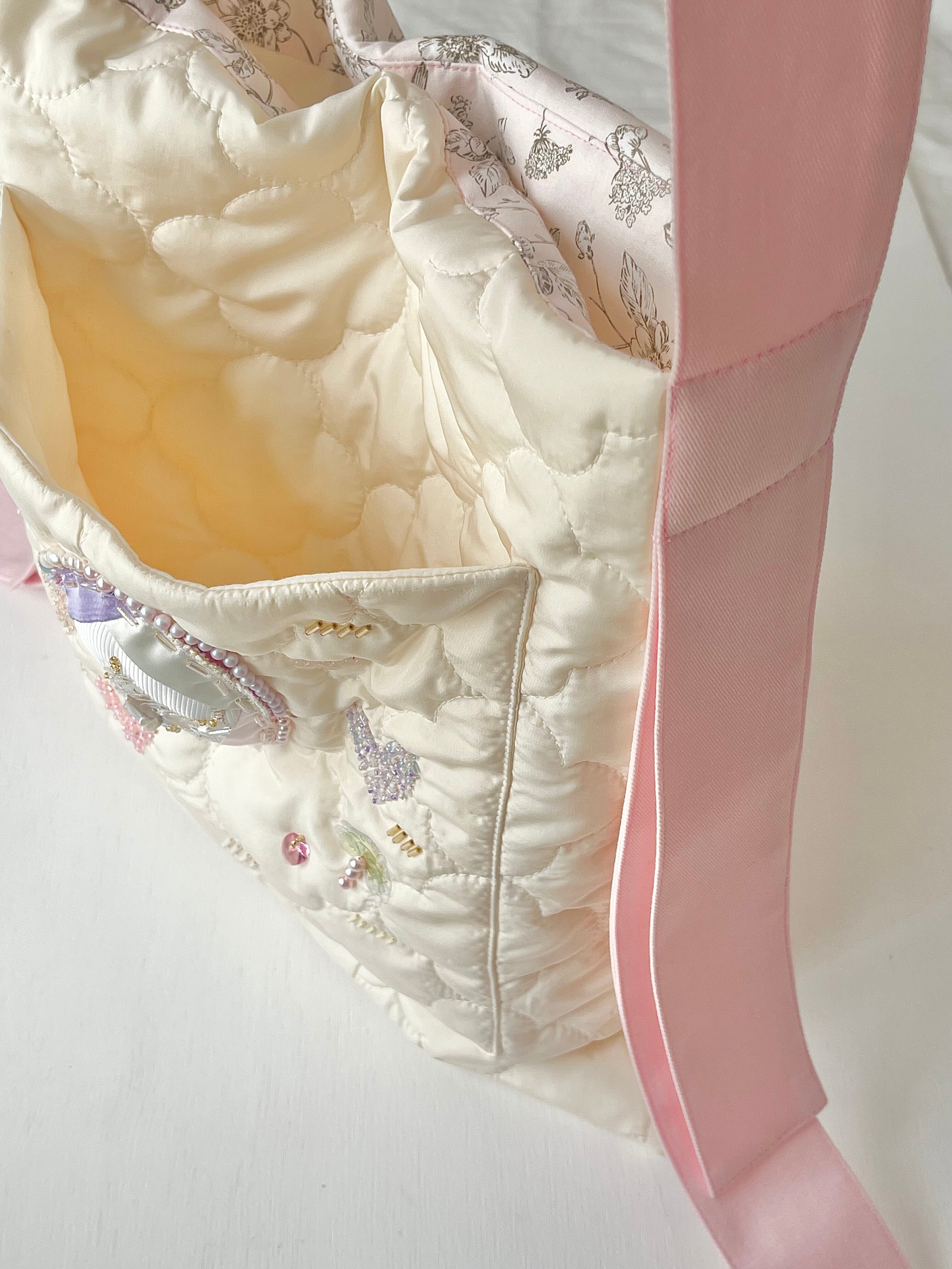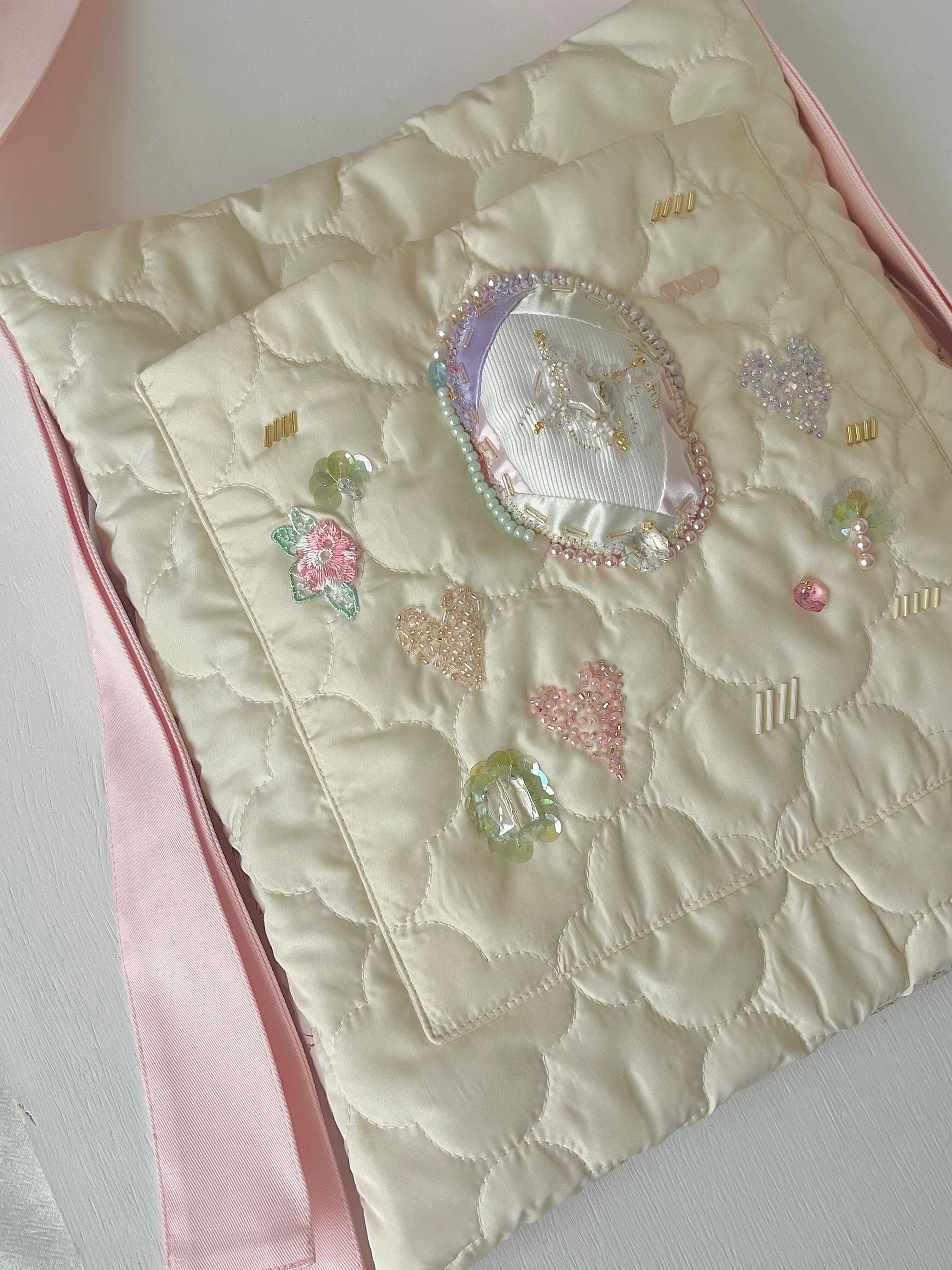 きらきら輝くポケットを主役にした大人のためのキュートなバッグが完成しました。