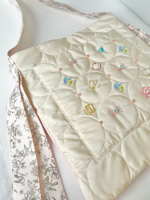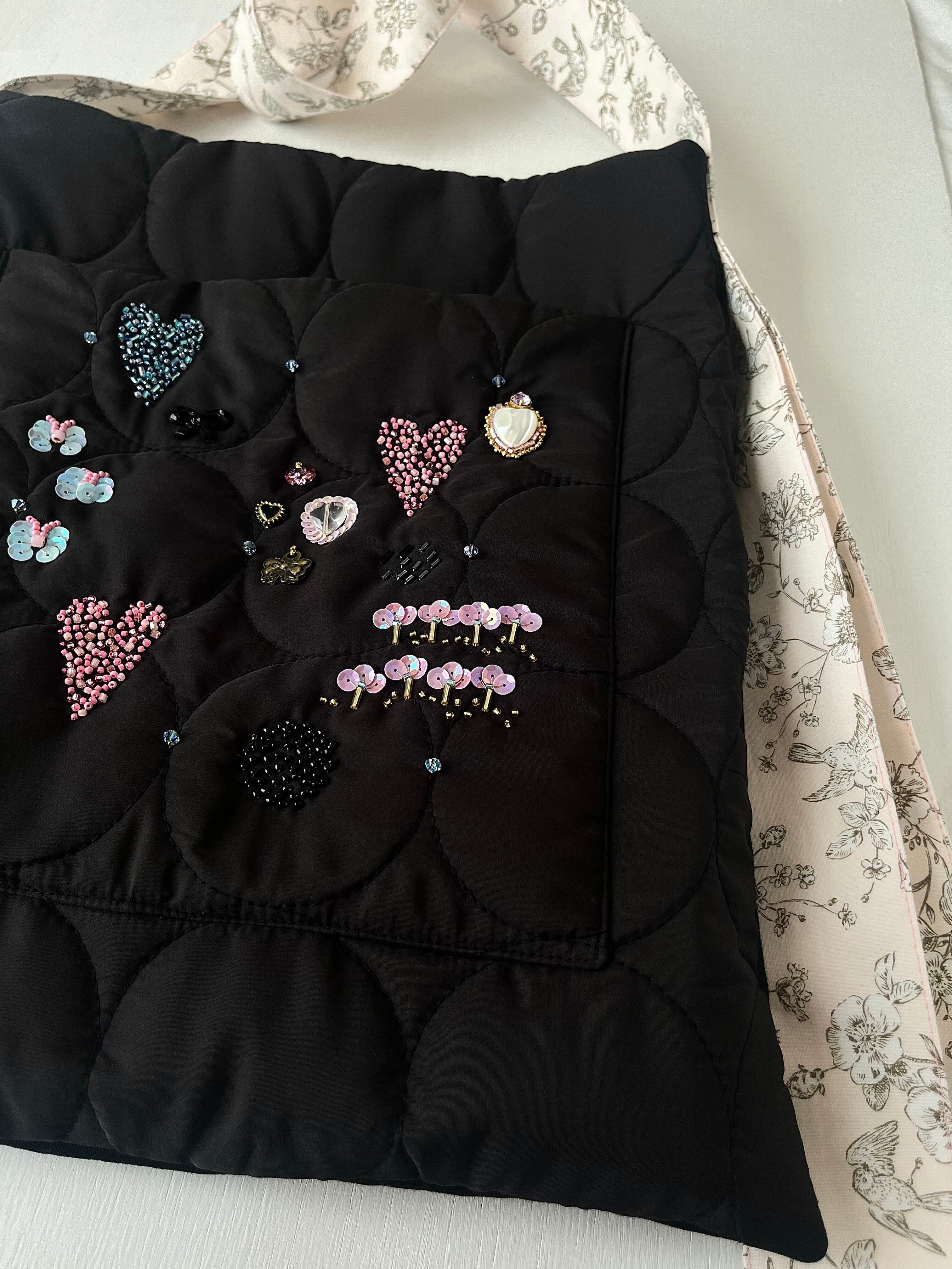 きらきら輝くポケットを主役にした大人のためのキュートなバッグが完成しました。