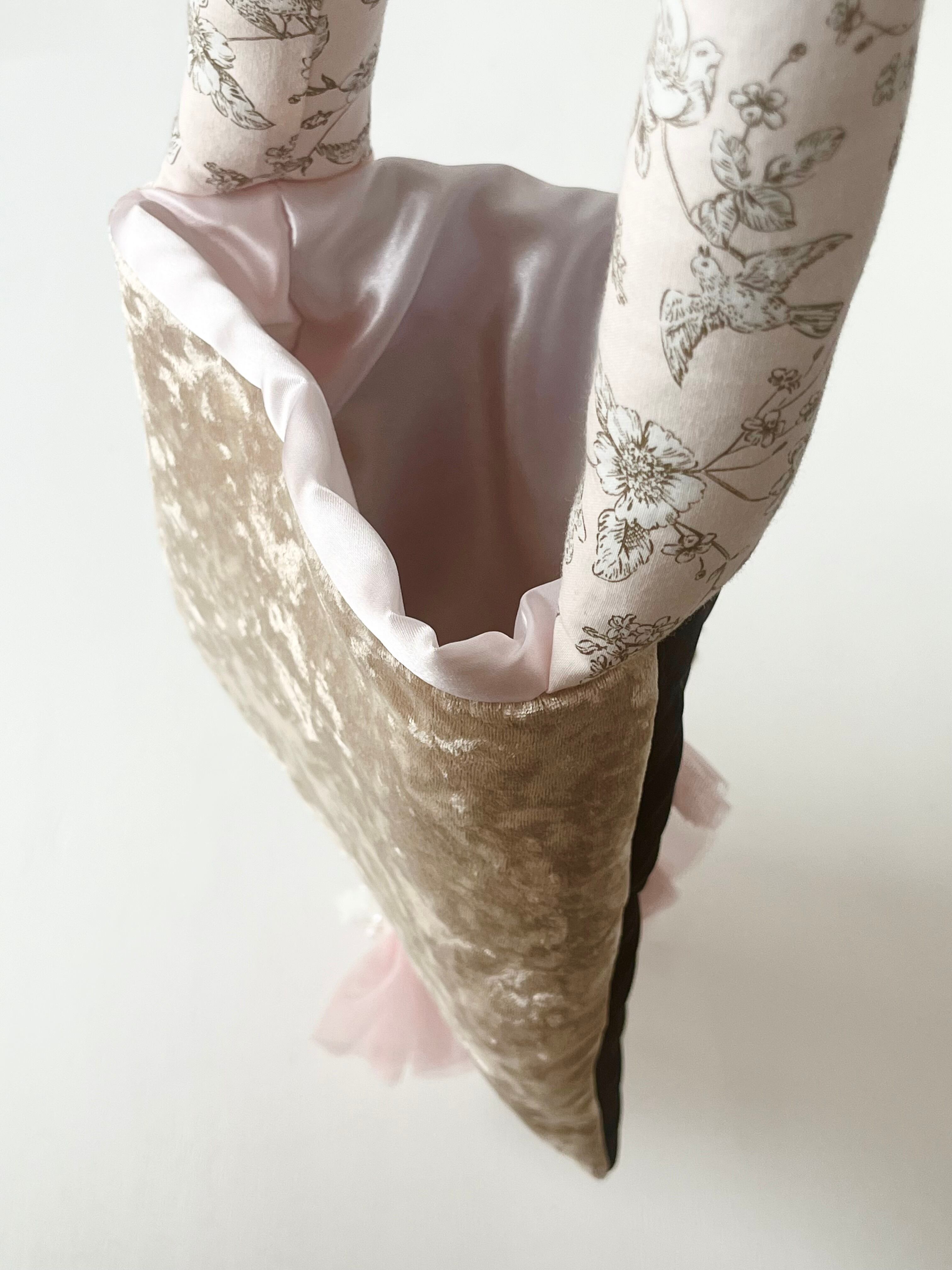 ○コットン、ポリエステルなど異なる素材を縫い合わせた繊細な作りとなっております