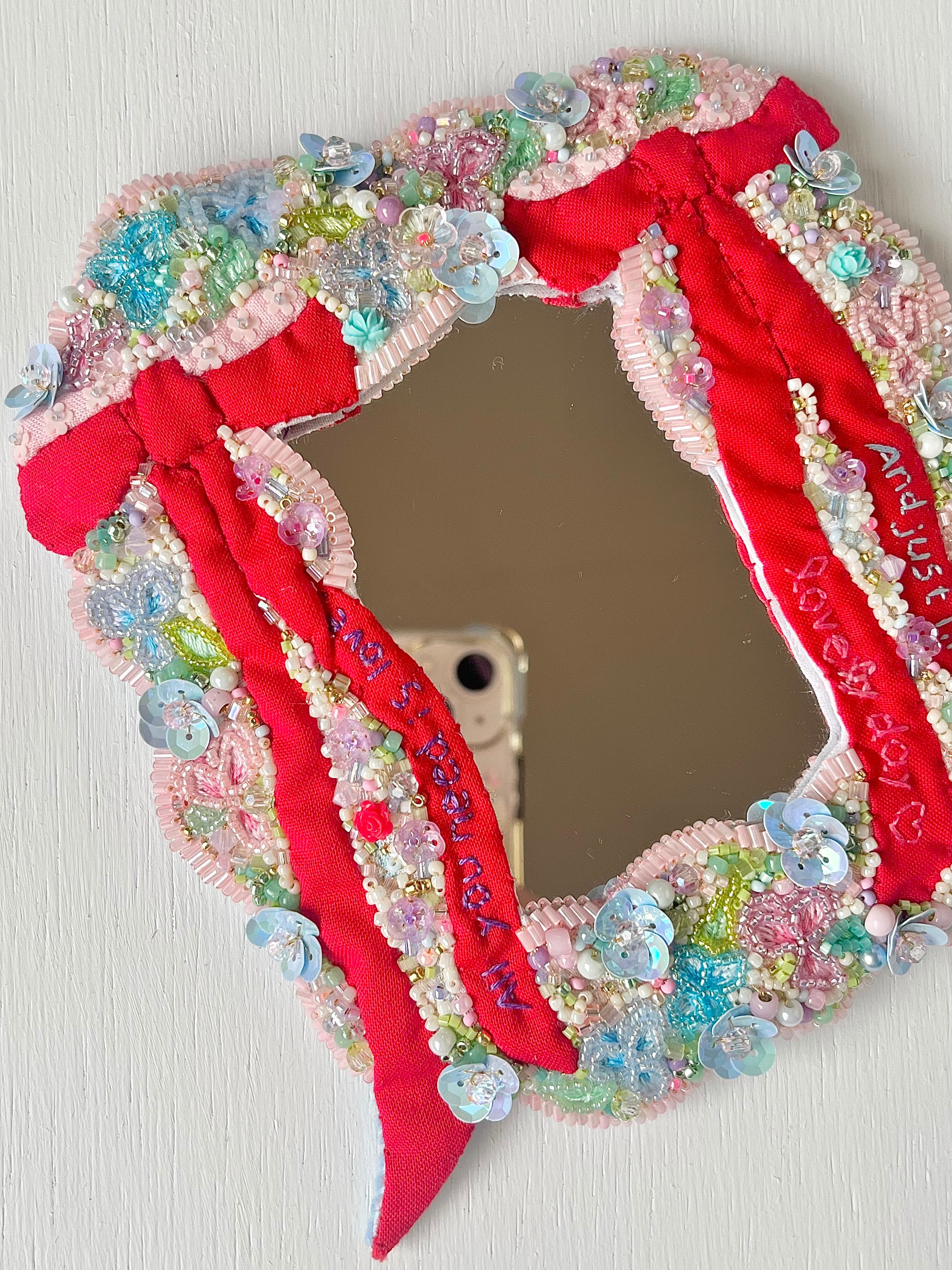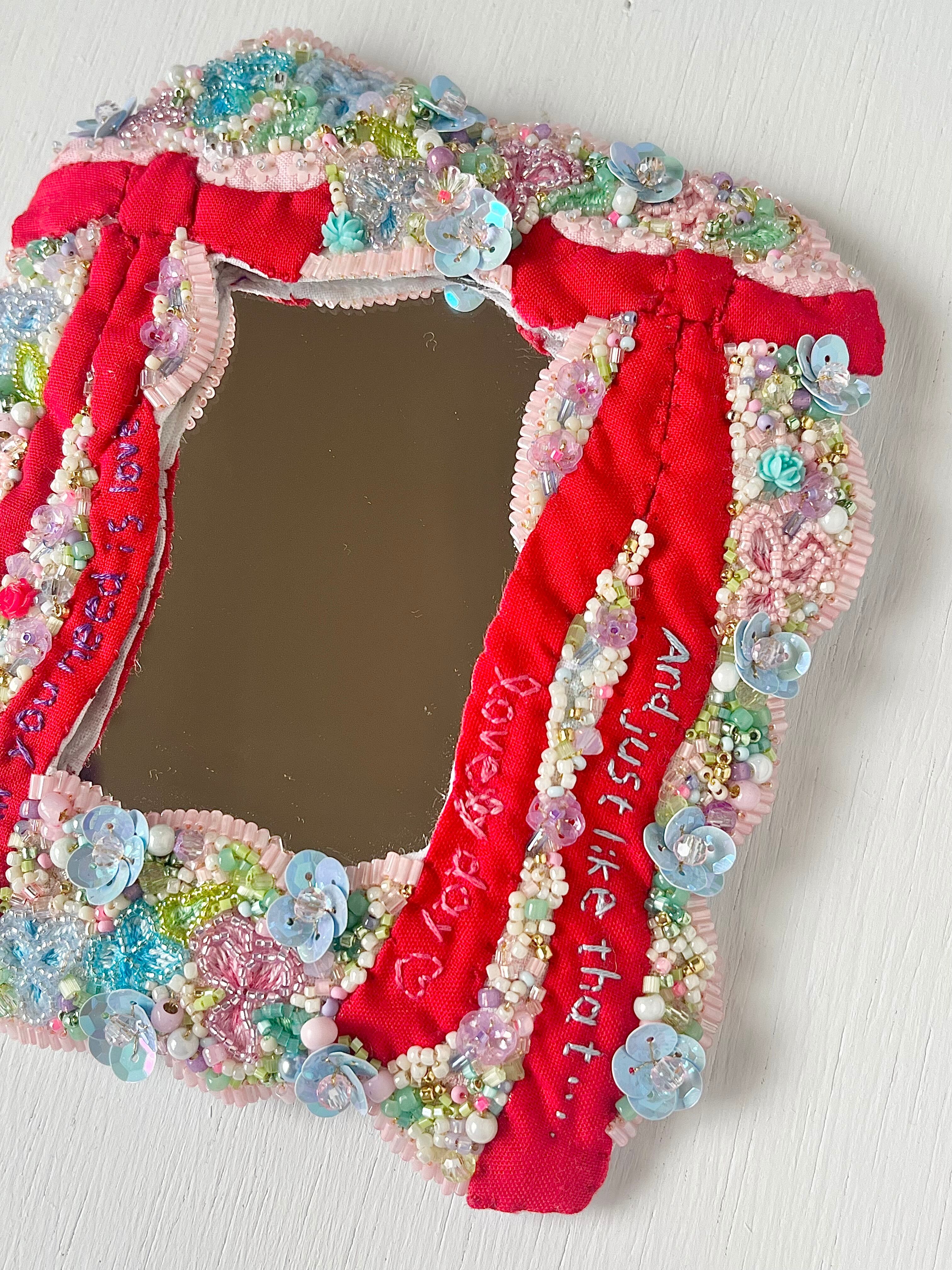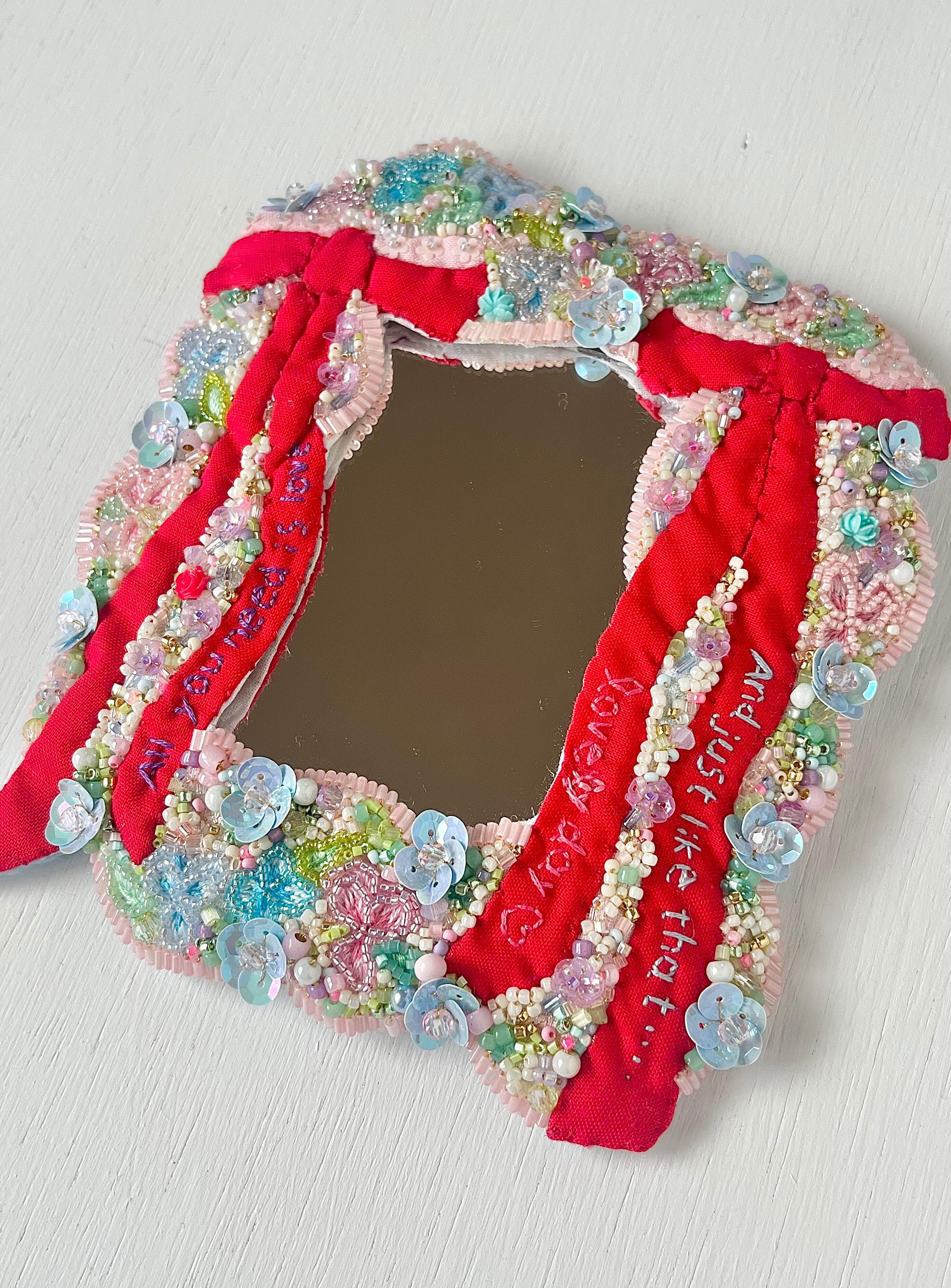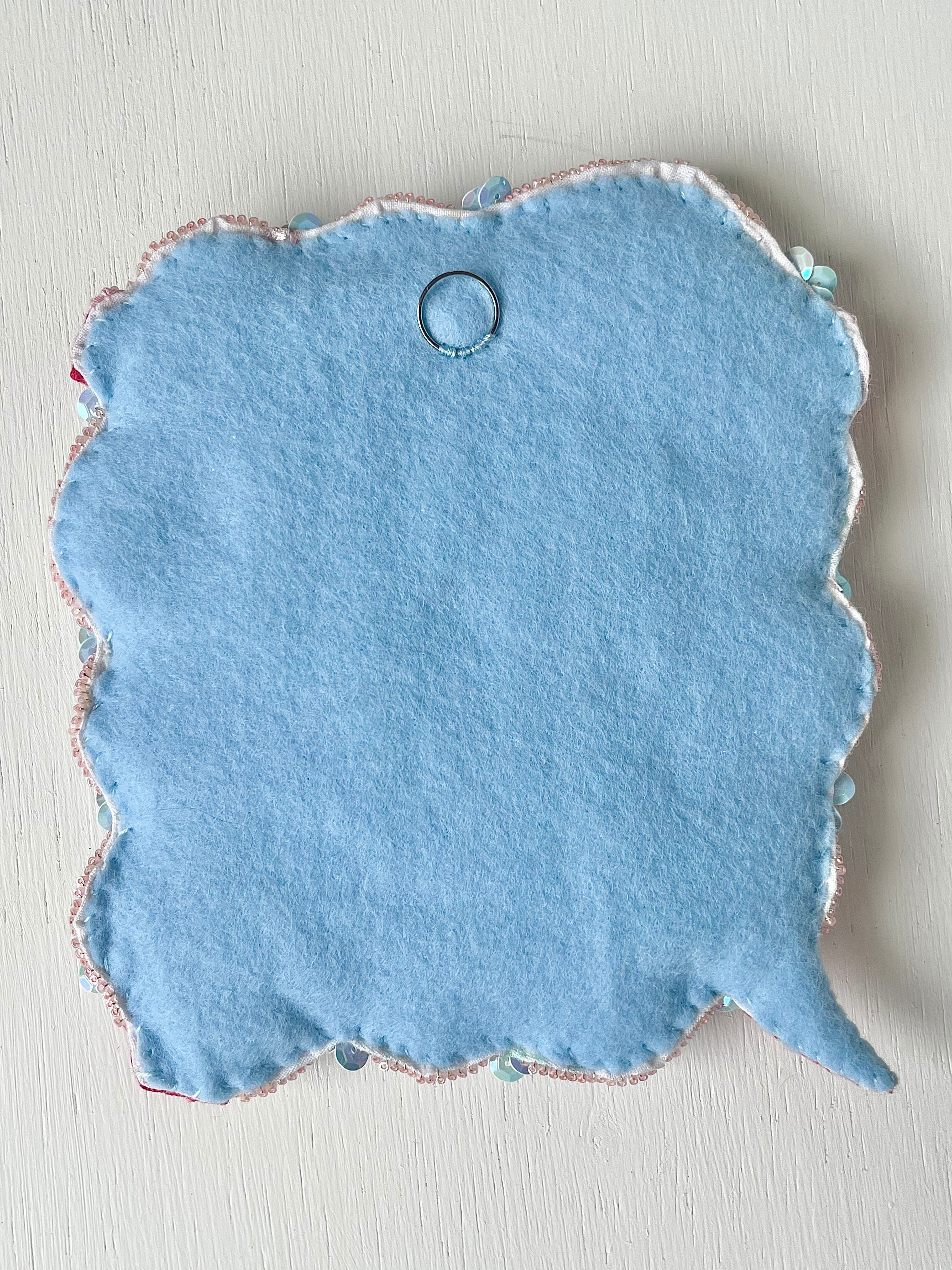 コットン生地、金糸、フランス産スパンコール、アクリル絵の具、天然石、ガラスビーズ、裏布にフェルト