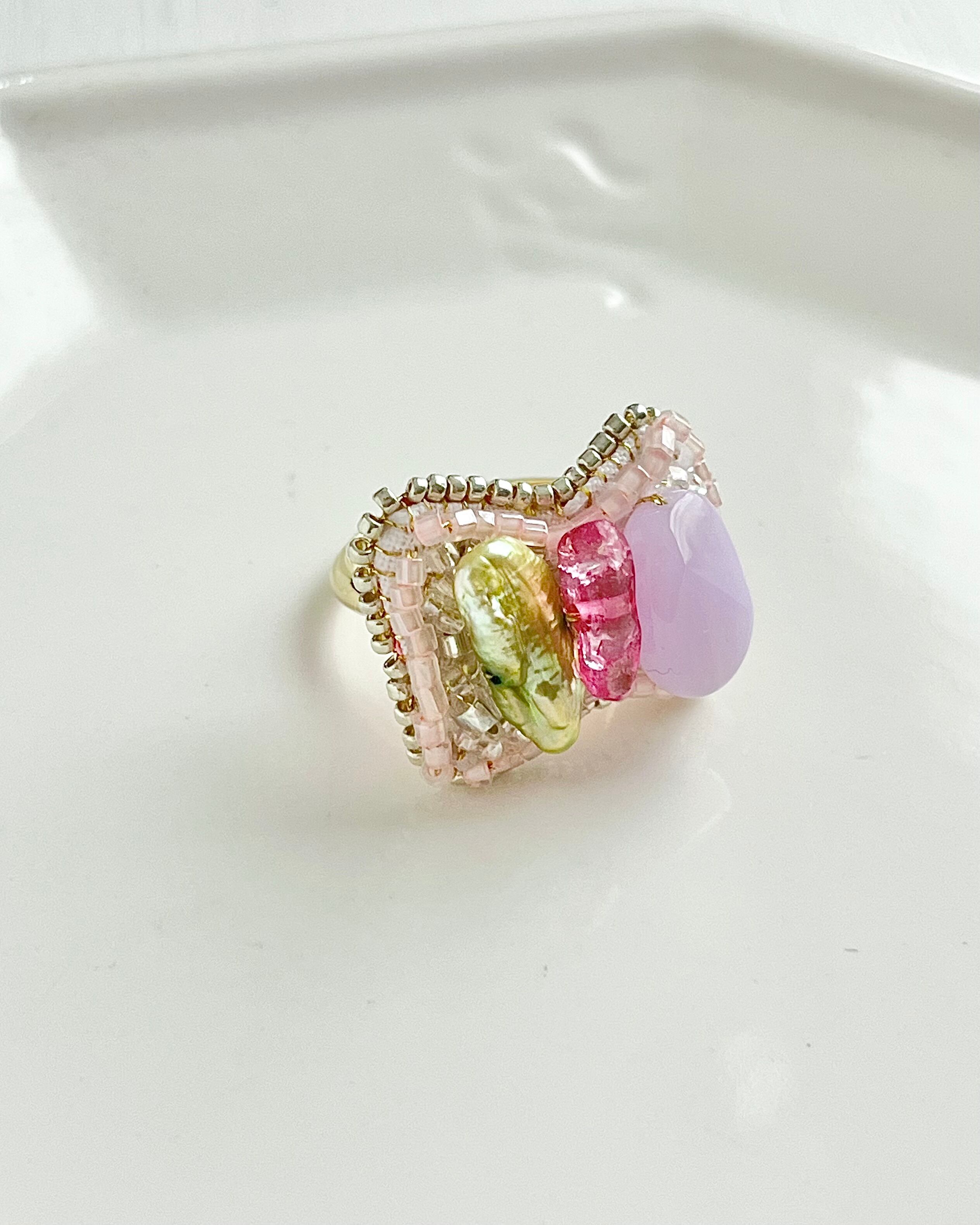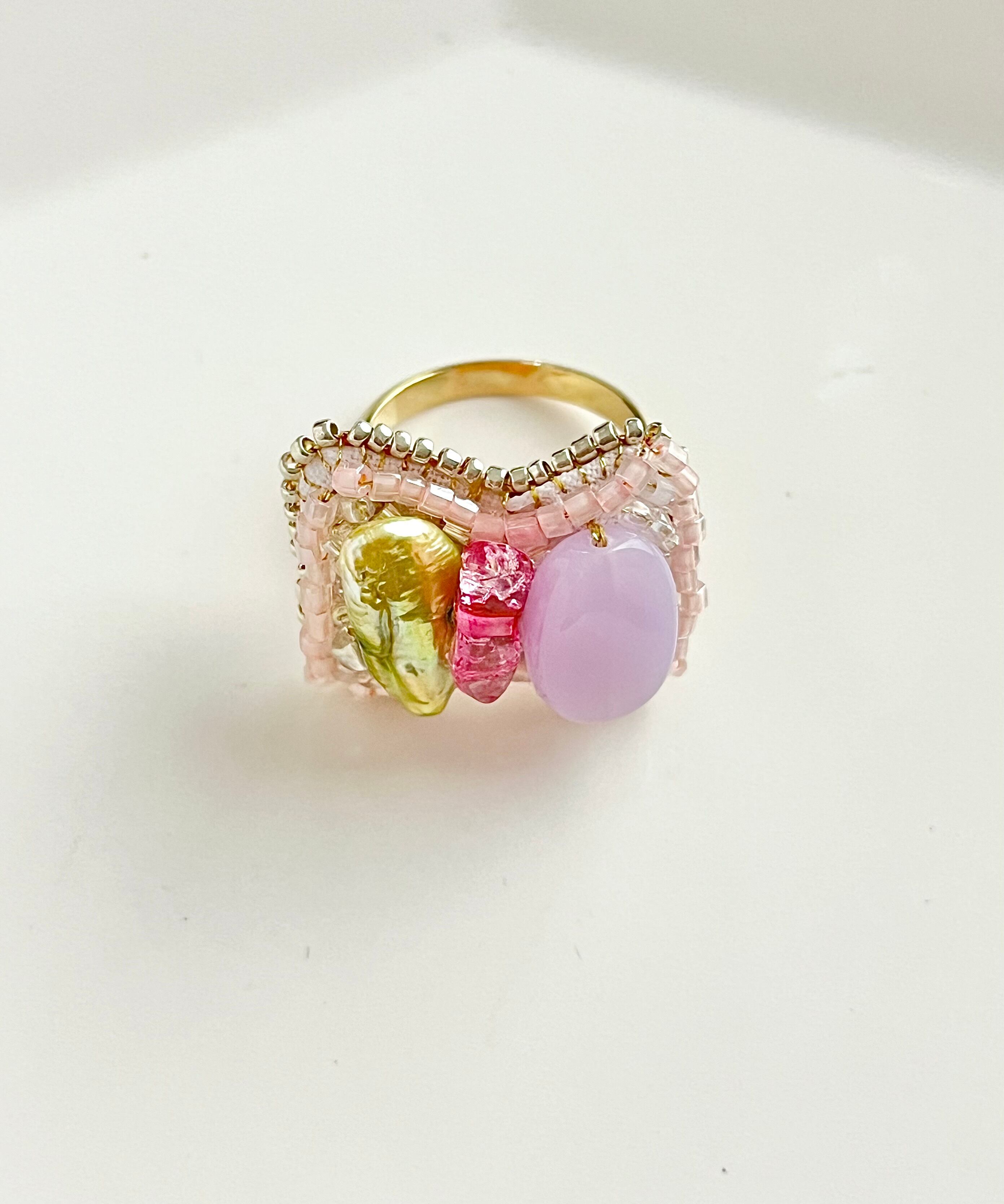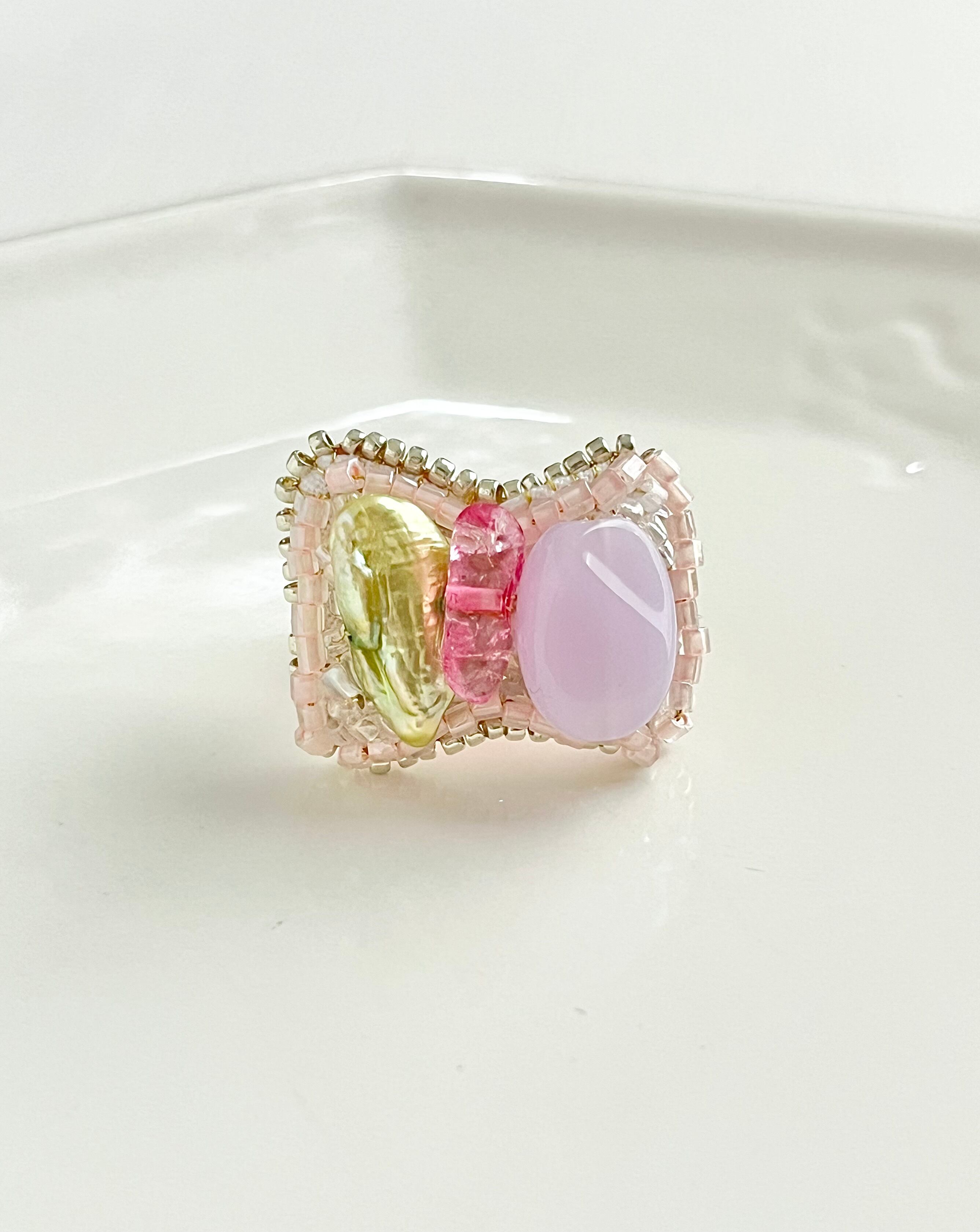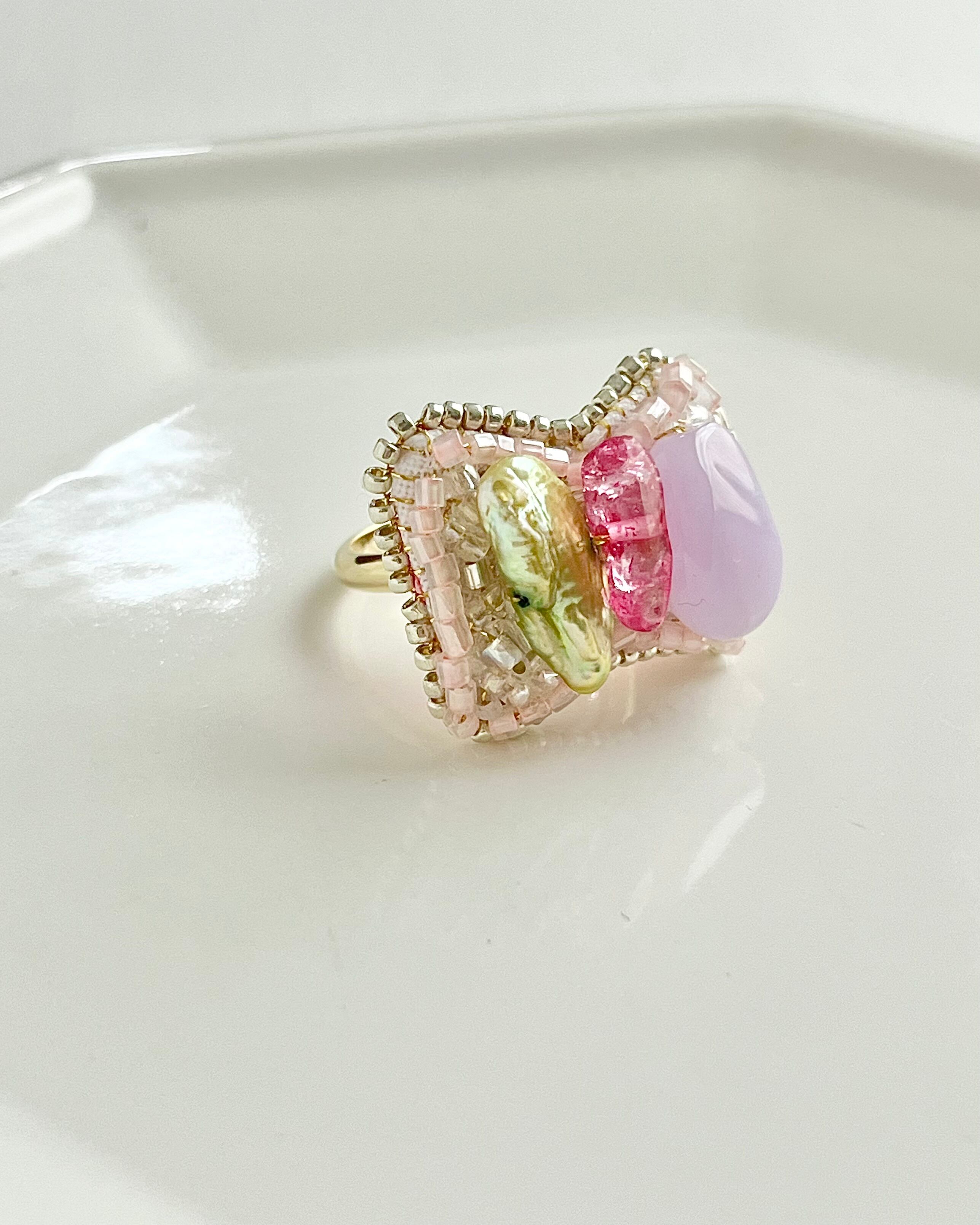 おもちゃ箱をひっくり返したら出てきた懐かしい思い出のような天然石を主役にしたキュートなリングのシリーズです