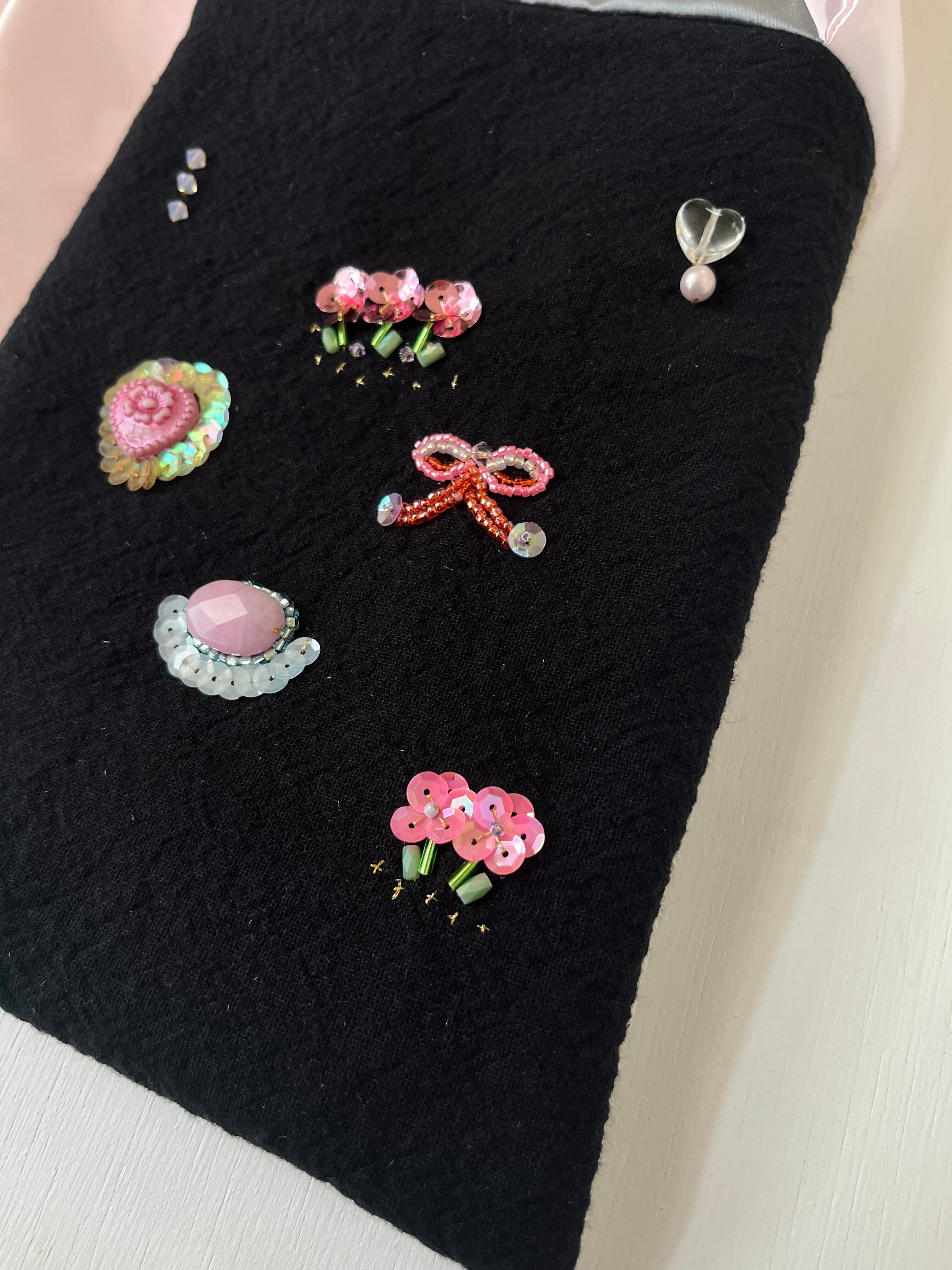 天然石やささやかな刺繍を飾ったsuumiの小さなおめかしショルダーばっぐ