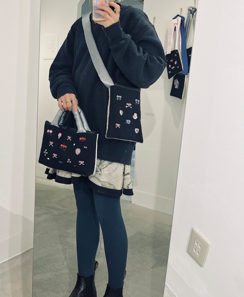 天然石、外国のおもちゃのビーズなどささやかな刺繍を飾ったsuumiの小さなおめかしばっぐ